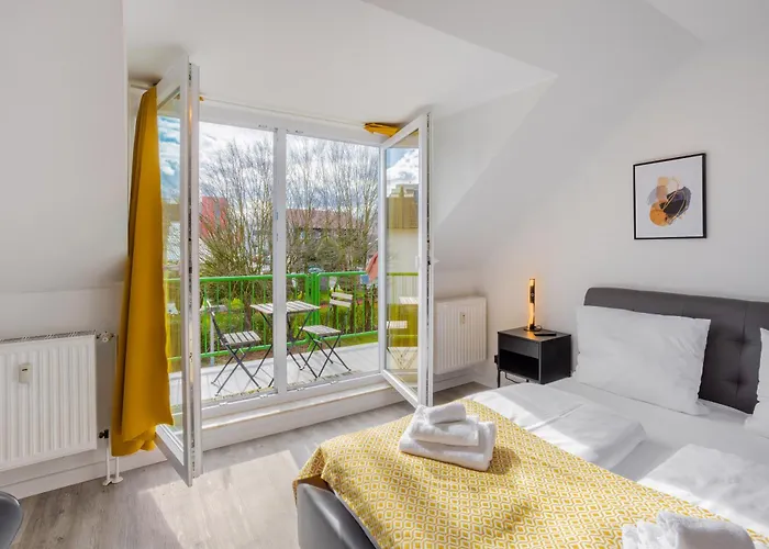 Apartament Mint Design-Studio Mit Balkon Dortmund o powierzchni 25 m^2 wychodzi na ogród i zapewnia gościom Wi-Fi oraz parking na terenie. Park Westfalenpark w Dortmundzie leży w około 4 km, a Stadion piłkarski Signal Iduna Park - 7 km od 1-pokojowego apartamentu.